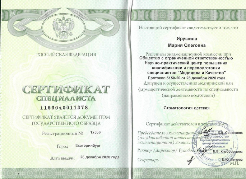Мария Олеговна — детский стоматолог-терапевт со стажем более 12 лет. К ней идут детки самых разных возрастов за лечением кариеса, пульпита и их осложнений. Мария Олеговна знает о страхах и тревогах своих пациентов, поэтому старается найти подход к каждому и помогает справиться с проблемами в полости рта без боли. Ей важно сохранить улыбку каждого ребенка, поэтому она уделяет большое внимание диагностике и всегда ответственно относится ко всем процедурам.
