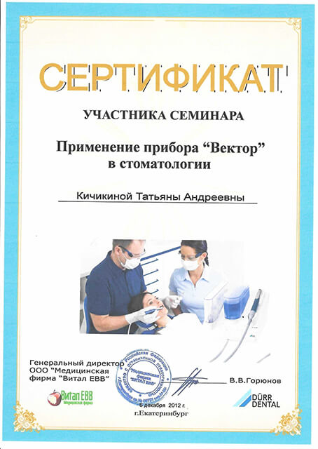 2012 г. – «Применение прибора Вектор в стоматологии» («Витал ЕВВ»). Лектор- Горюнов В. В.
