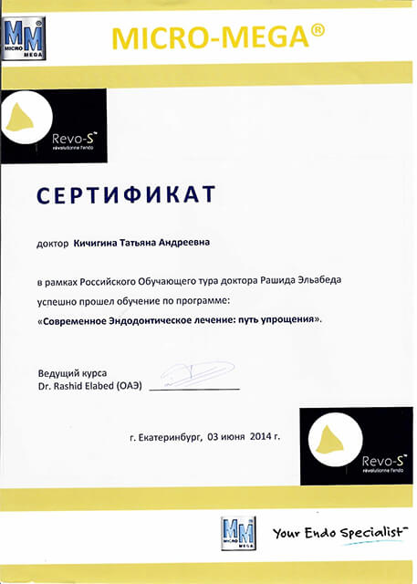 2014 г. – «Современное Эндодонтическое лечение: путь упрощения» Dr. Rashid Elabed (ОАЭ)