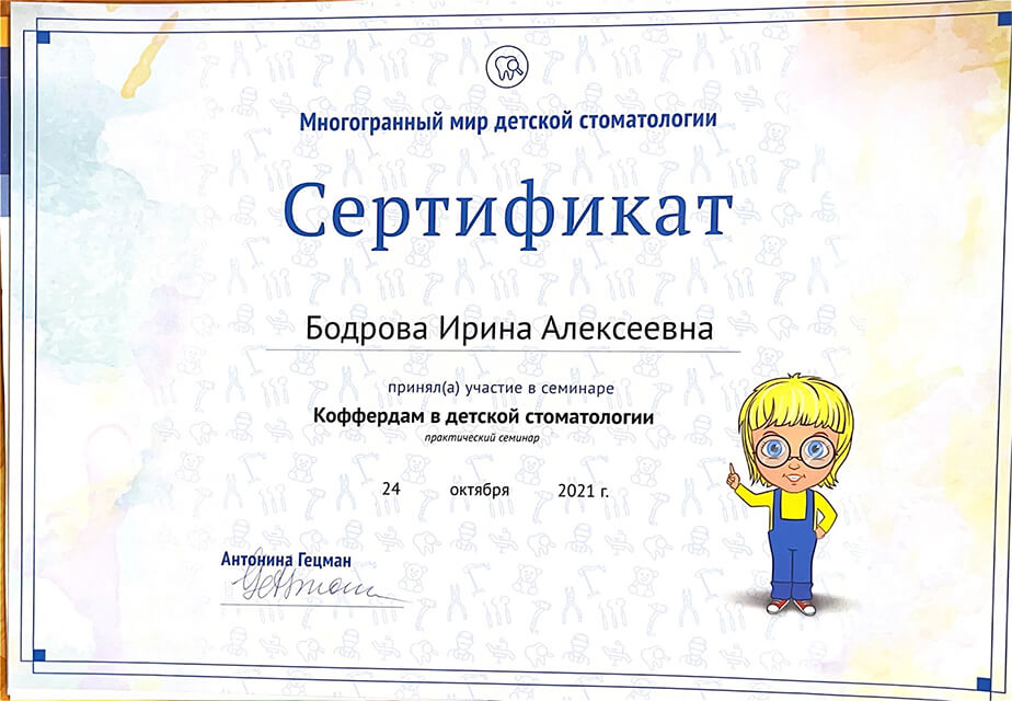 Были с моей 5 летней дочкой на проф гигиене у Сушниковой Анны Вадимовны. Я первый раз увидела восторг в глазах ребёнка от посещения врача! Анна Вадимовна легко нашла подход, нам предложили несколько вкусов пасты, которой будем чистить, на протяжении всего приема врач держала хороший контакт с ребёнком, после завершения процедуры мне подробно рассказали какие у нас особенности, как и какими средствами нам поддерживать здоровье. Когда мы вышли из кабинета дочка спросила - Когда мы ещё пойдём к этому доктору? Теперь проф гигиена у нас долгожданная процедура) И конечно, мы пойдём только к Анне Вадимовне!