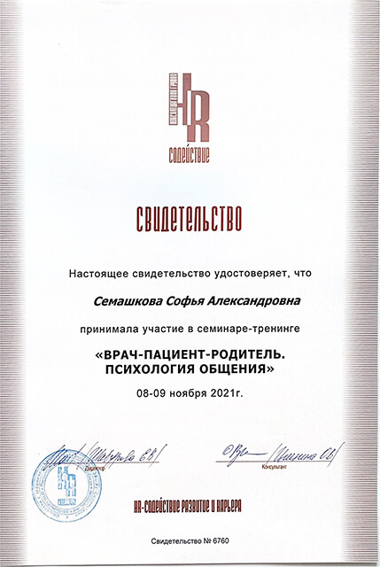 Главная Врачи Семашкова Софья Александровна