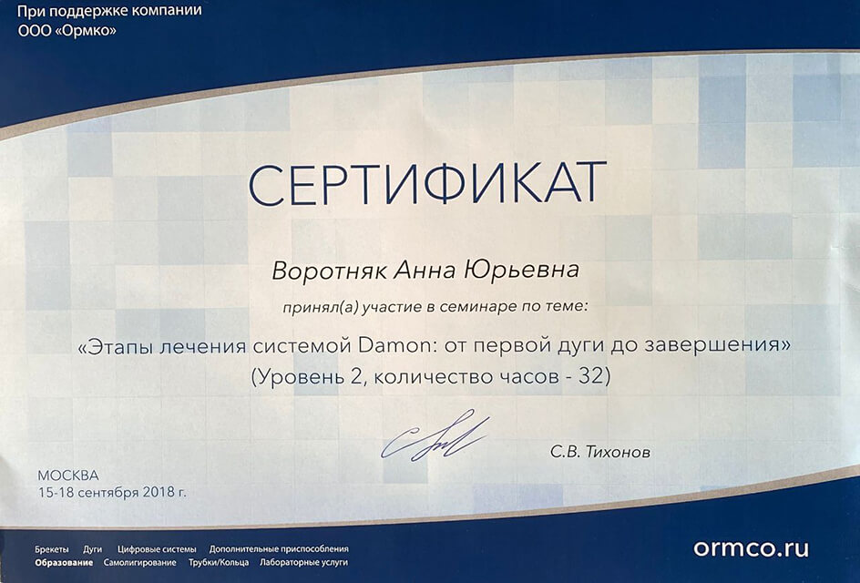 2018 г.- «Этапы лечения системой Damon: от первой дуги до завершения»