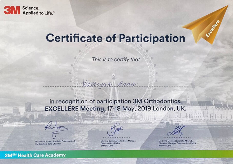 2019 г.- 3M Orthodontics, EXCELLERE Meeting. London, UK.